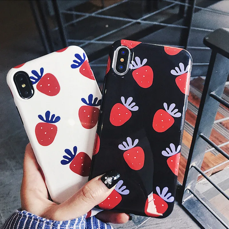 Kopen Goedkoop Cartoon Fruit Aardbei Glad Telefoon Gevallen voor iphone X 6 6 s 7 8 Mode Leuke Soft IMD Cover voor iphone 7 8 6 6 s plus Prijs