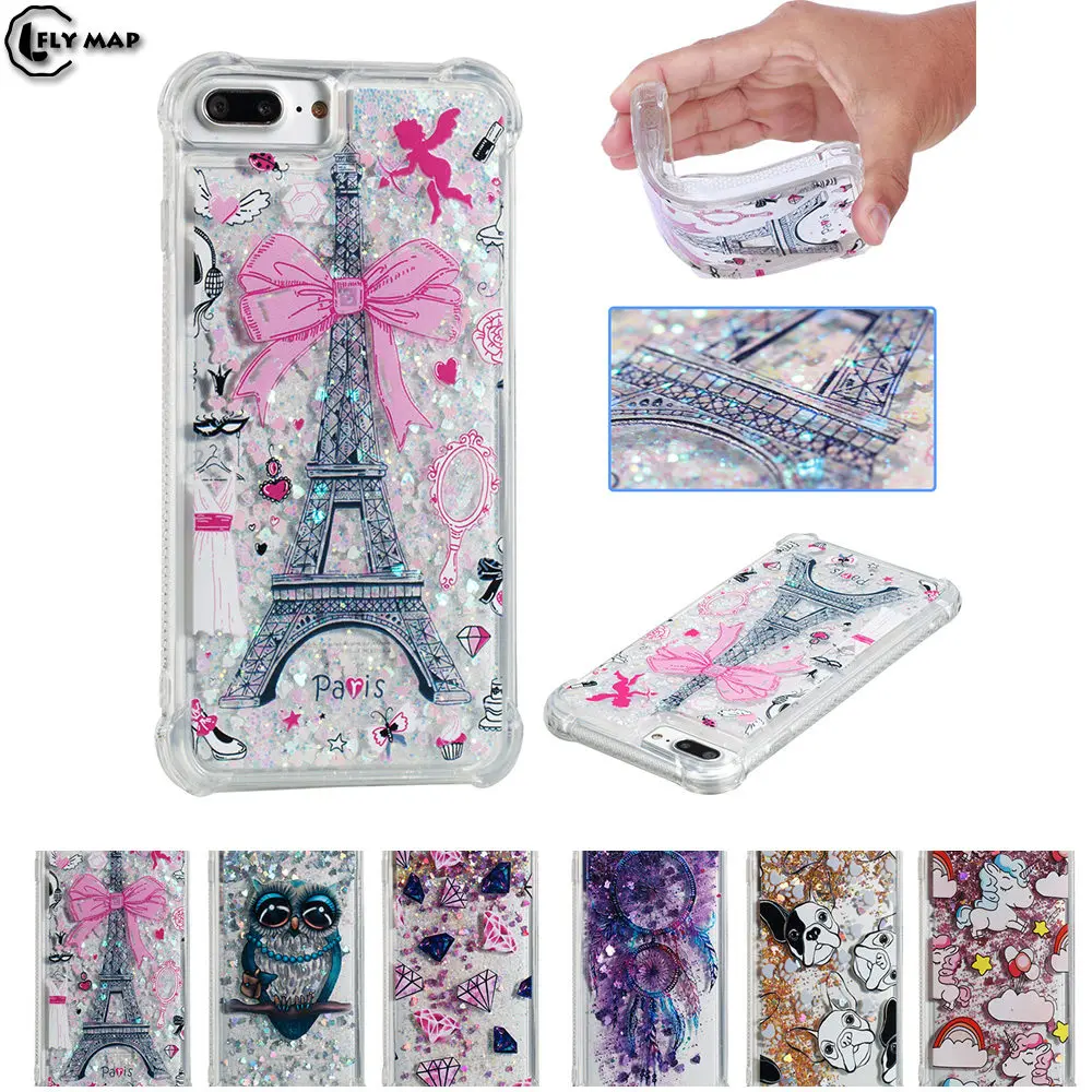 Beste Koop Eenhoorn Uil Cover apple iPhone 7 Plus A1786 A1785 Dynamische vloeibare Puin Quicksand Back Case voor iPhone 8 Plus A1897 A1898 Goedkoop