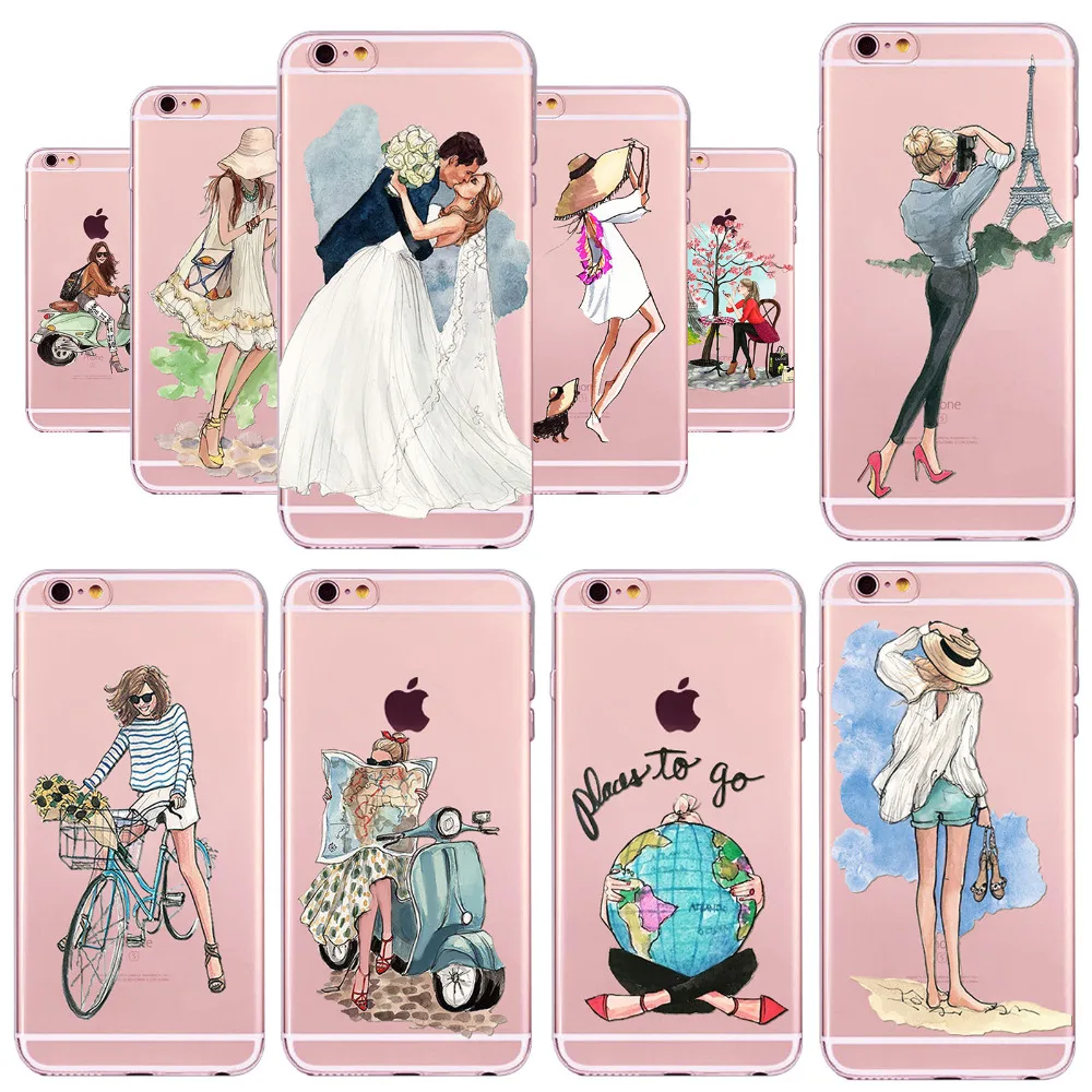 Kopen Goedkoop Jonge Mode Mooie Gril Travel Relax Telefoon Case Voor Apple iPhone 6 6 s 6 sPlus Transparante Dunne Soft Silicon telefoon Shell Online