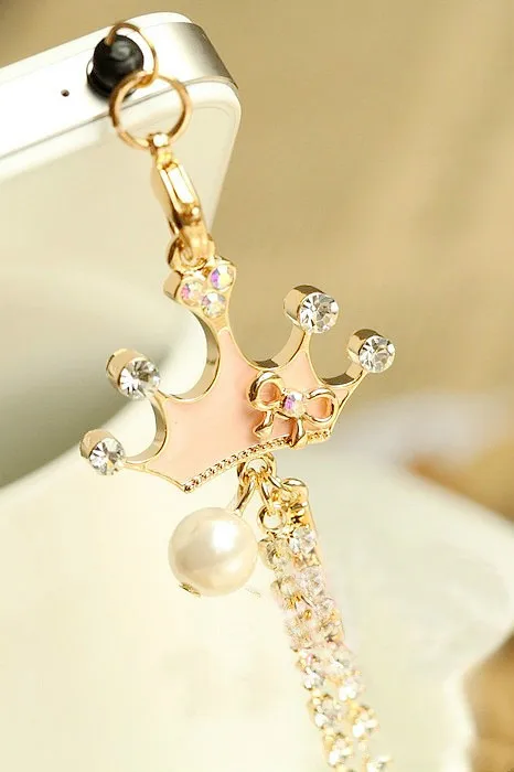 Kopen Goedkoop Fashion Drip dubbelzijdig Lange keten Kroon Telefoon Stof Plug Hoofdtelefoon Oortelefoon Jack Plug voor Iphone voor Samsung voor Xiaomi Prijs