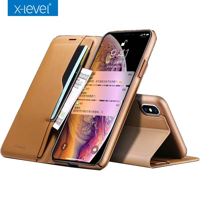 Goede Kopen X Niveau Lederen Beugel Portemonnee case voor iPhone XS Max XR XS met kaart zakken stand functie flip cover voor iPhone XS Max XR Goedkoop